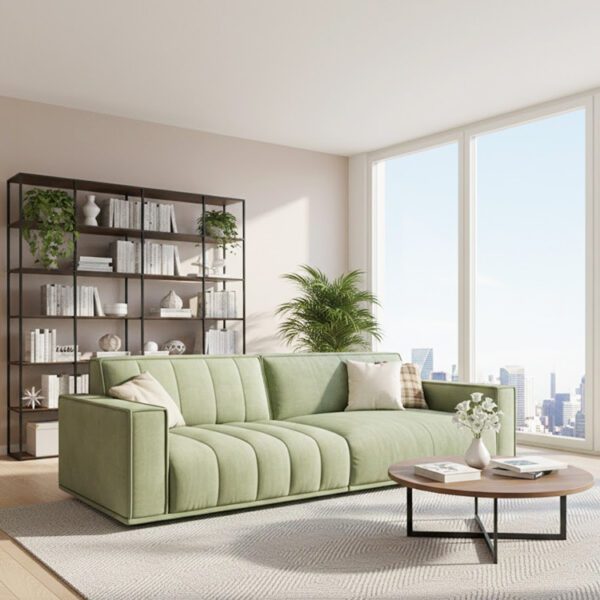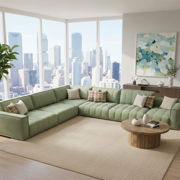 Minimal yet inviting, this light green sectional sofa offers generous seating and refined lines—crafted to create a serene, stylish living room experience.