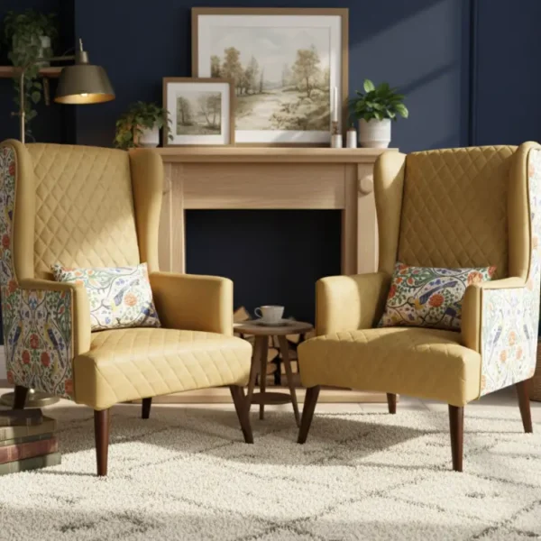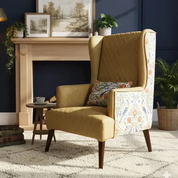 This printed arm chair features elegant teak wood legs and is fully customizable in color, size, and pairing. Designed for comfort and versatility, it’s perfect for curated interiors and coordinated sets.