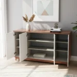 With warm wood tones, crisp white doors, and open shelving, the Baskora Sideboard blends modern simplicity with everyday function. Its clean lines and airy design suit light-filled interiors with a relaxed, natural aesthetic