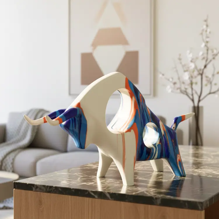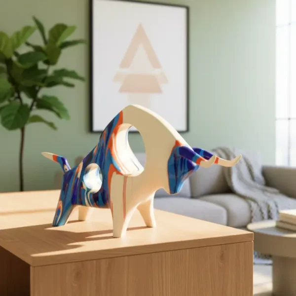 Capture the spirit of modern art with this Blue and White Swirl Bull sculpture. Featuring a dynamic, marbled pattern in bold cobalt and crisp white, this contemporary figurine brings vibrant energy and a sophisticated flair to any shelf or mantelpiece.