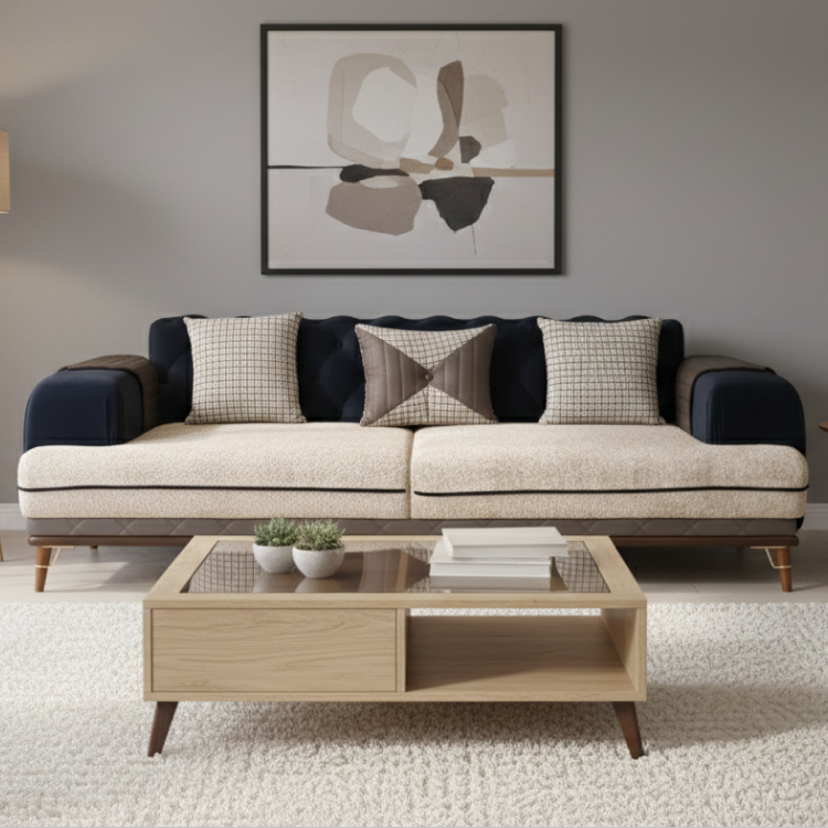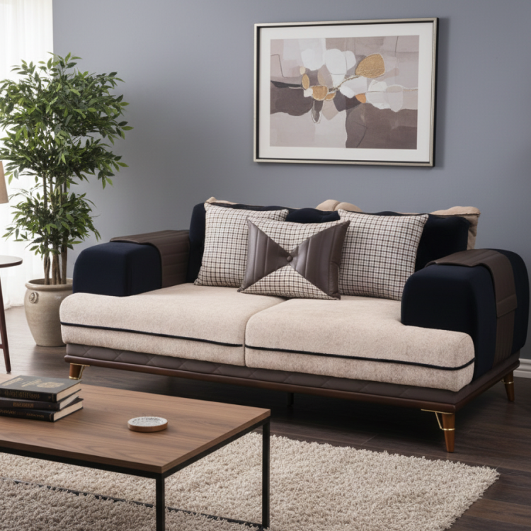 Experience comfort and sophistication with this stunning blue sofa. Upholstered in a deep sapphire-blue fabric, it blends luxurious texture with a timeless silhouette. Soft cushions, premium stitching, and a sturdy hardwood frame make it a statement piece for contemporary homes.