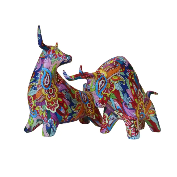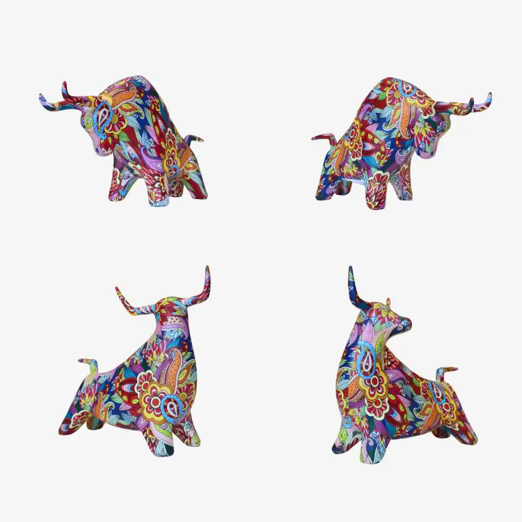 Brighten your space with the Colorful Bull Duo, featuring vibrant patterns and artistic detailing. These eye-catching decorative pieces add charm, energy, and personality to any room, making them perfect for modern homes or display shelves.