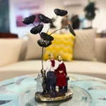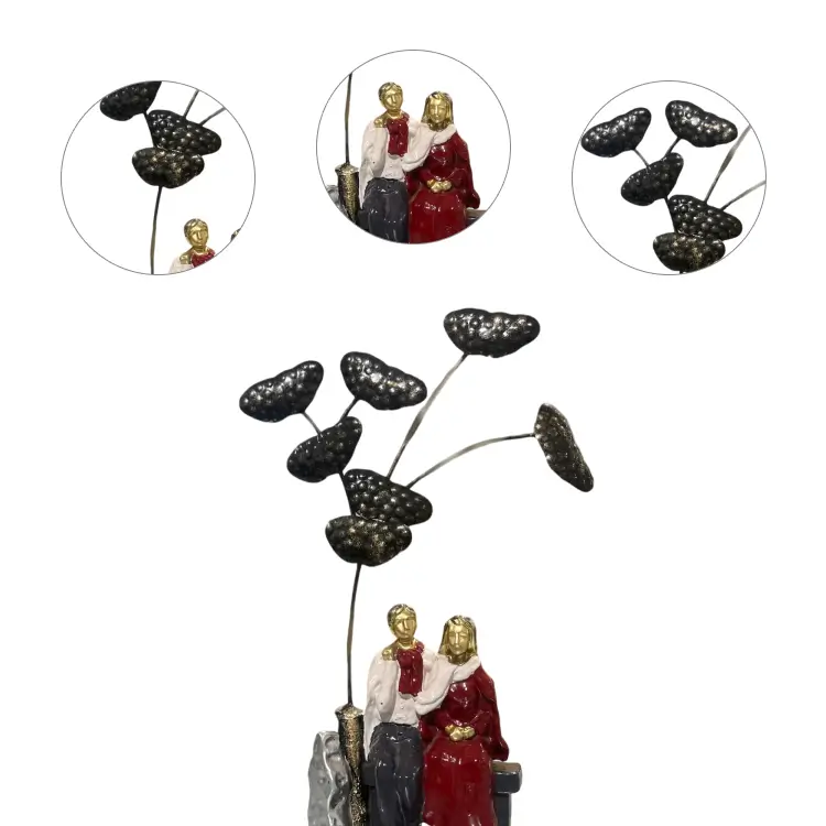 A romantic sculpture of a couple seated beneath golden leaves, capturing warmth and togetherness. With rich red tones and elegant detailing, this piece adds charm and intimacy to any modern decor setting.