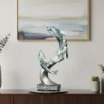Bring a calming ocean vibe to your home with this elegant Dolphin Trio sculpture. Featuring three dolphins in a flowing design, it adds a refreshing and stylish touch to any table, shelf, or living room space.
