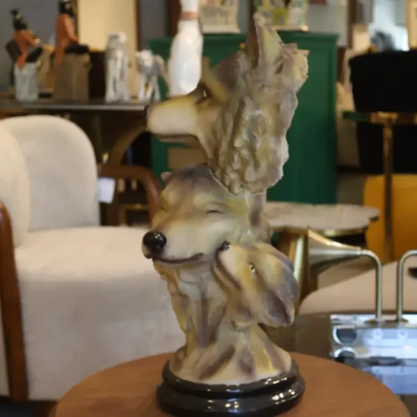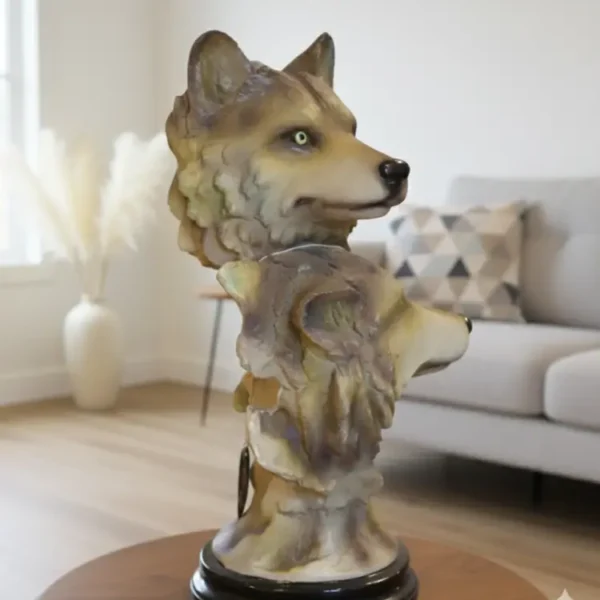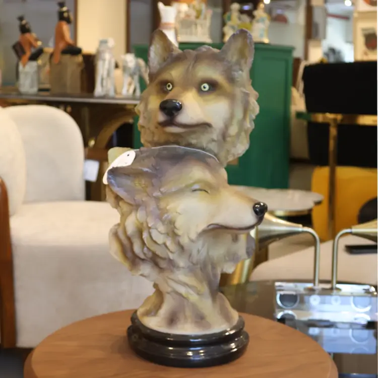 The Dual Spirit Wolves sculpture captures alertness and serenity in two lifelike wolf heads. Painted in earthy tones, it symbolizes emotional contrast and wild elegance—perfect for adding depth to curated interior spaces.