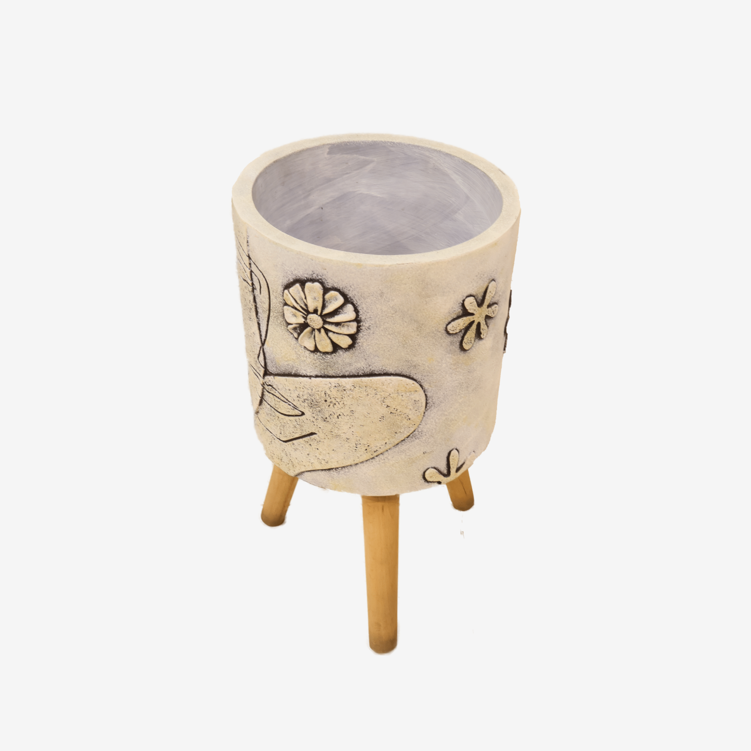 This stylish fiber pot in a soothing ice blue hue features sturdy wooden legs for a modern touch. Suitable for both indoor and outdoor use, it adds fresh charm to any space.