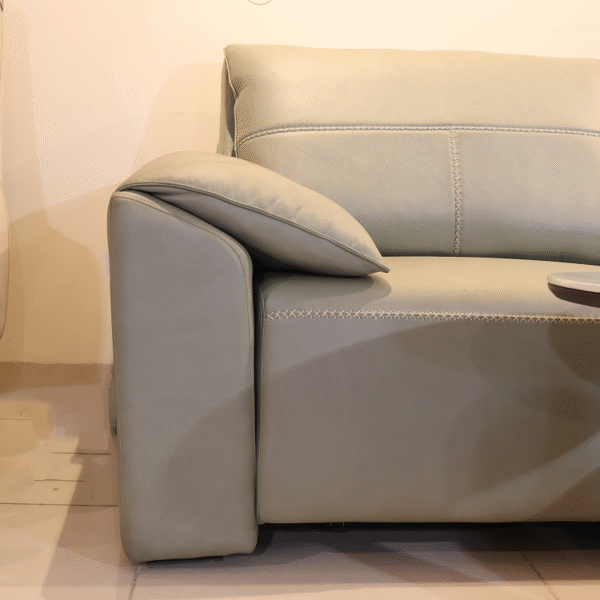 L-Shape Motorised Green Sofa offers plush comfort with a modern twist. Its L-shaped design, soft green upholstery, and sculpted lines create a stylish retreat perfect for relaxed lounging and contemporary interiors.