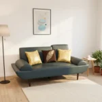 Upholstered in rich teal and accented with botanical-patterned pillows, the Leafline Teal Sofa brings warmth and style to modern interiors. Its plush form and earthy palette create a serene, sunlit lounge experience.