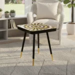 This stylish PU side table features sleek teak legs with golden caps. Combining modern materials with classic elegance, it’s a versatile accent piece for living rooms, bedrooms, or lounge areas.