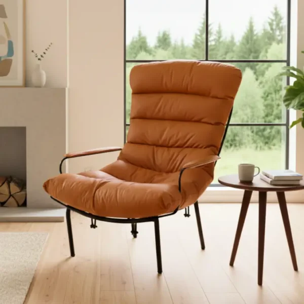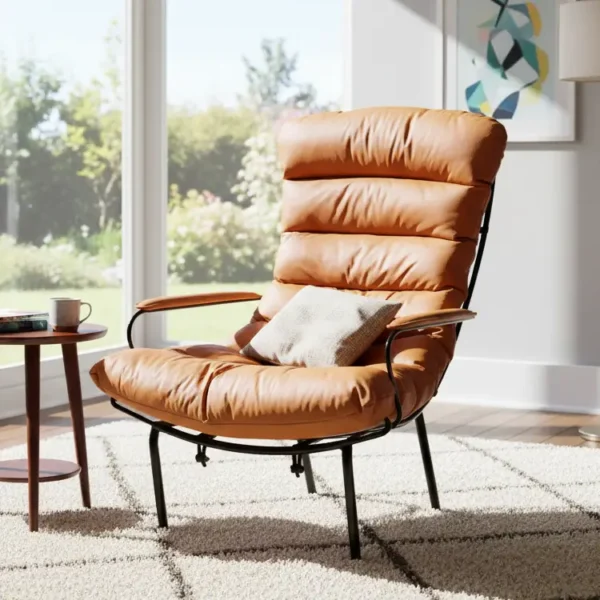 This imported rocking chair features a durable steel metal frame and a matching footstool for added comfort. Its sleek design and smooth motion offer a stylish, relaxing experience for modern interiors.