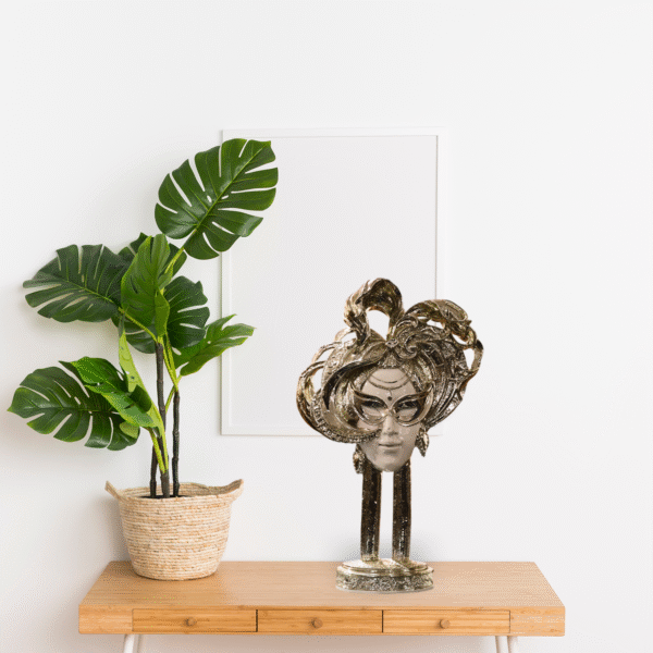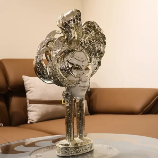 This elegant masked lady sculpture adds a touch of luxury and charm to any space. Designed with detailed silver accents and artistic styling, it is perfect for enhancing your living room, showcase, or office decor.