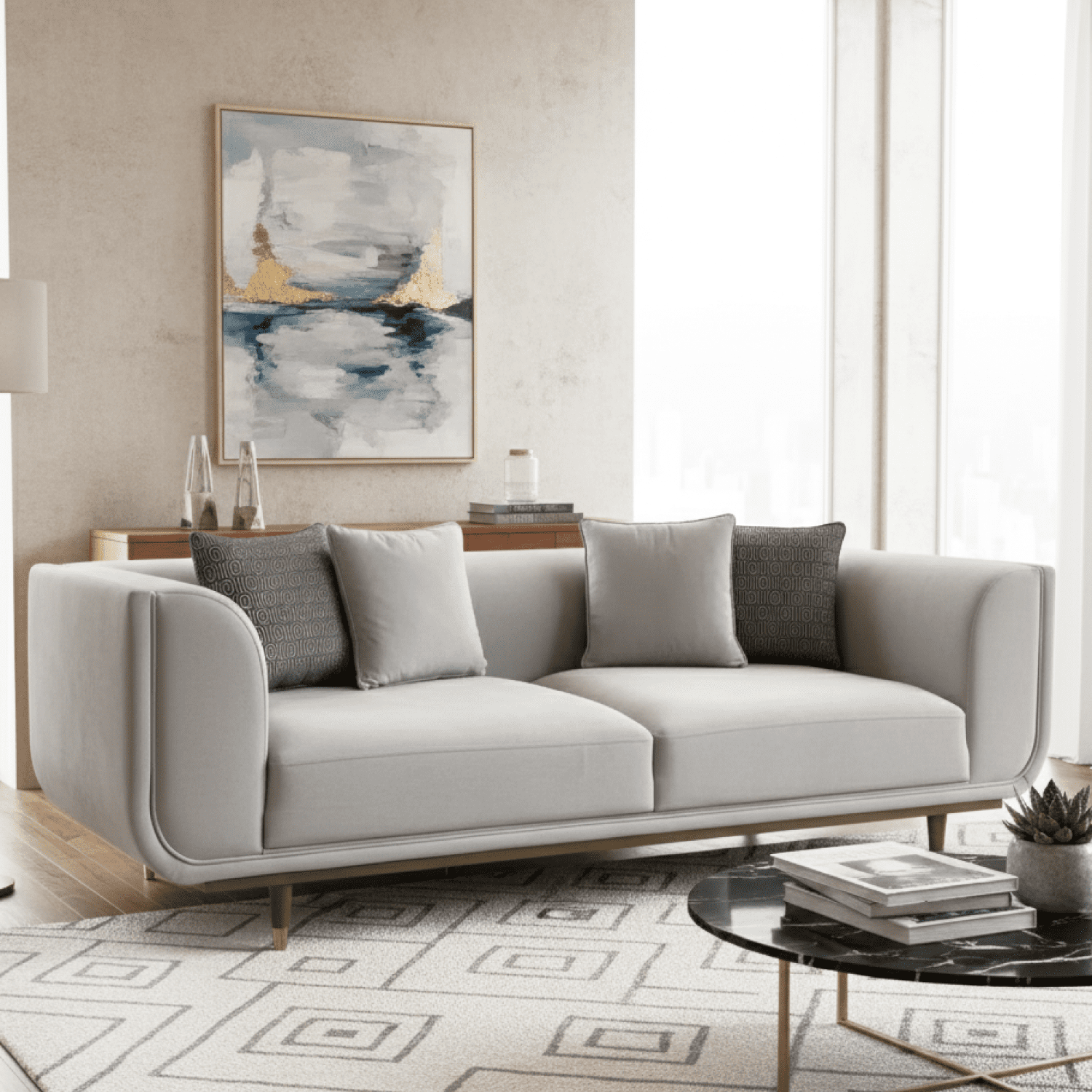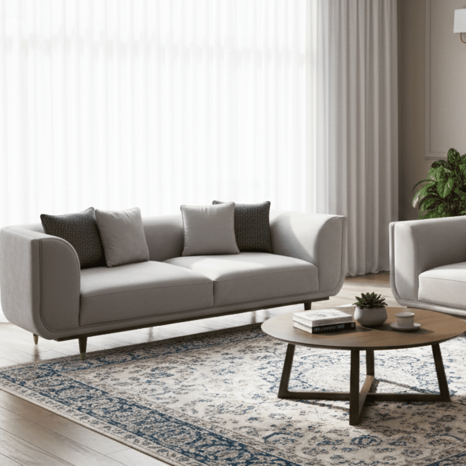 The Cambridge Sofa Set brings timeless sophistication and relaxed comfort together in perfect harmony. Featuring soft, generously cushioned seating with clean, tailored lines, this set is designed to create a refined yet inviting living space. Its neutral upholstery pairs effortlessly with a variety of interiors, while the subtly elevated wooden legs add a touch of warmth and elegance.